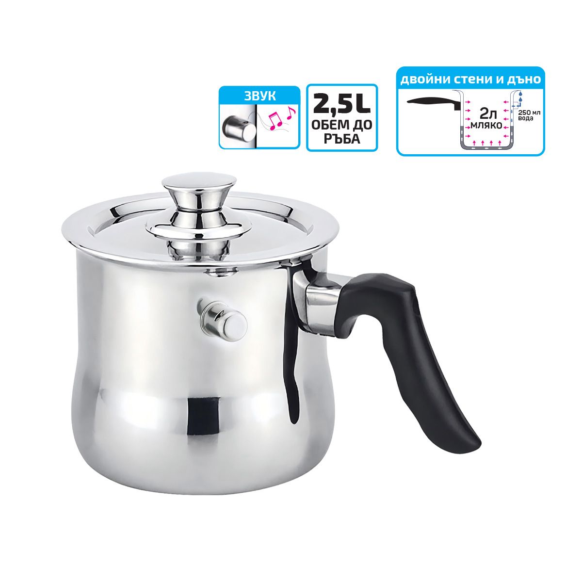 МЛЕКОВАРКА ЕК-25 MP, Неръждаема стомана, 2.5 л, Звукова сигнализация, Индукционно дъно