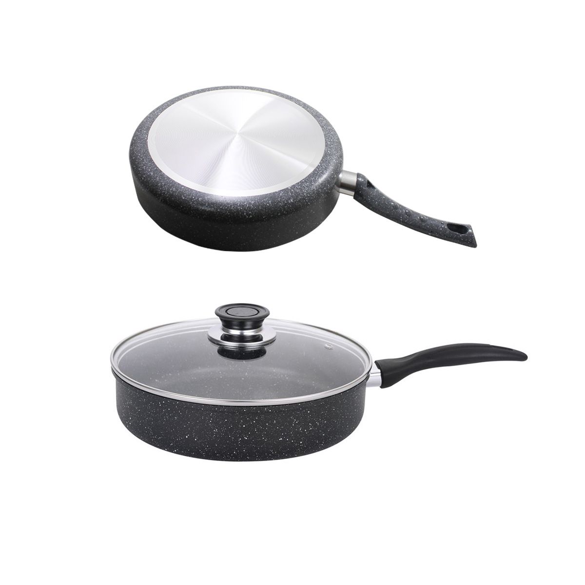 Дълбок тиган със стъклен капак ЕK-D22 M, Мраморно незалепващо покритие, 22 см