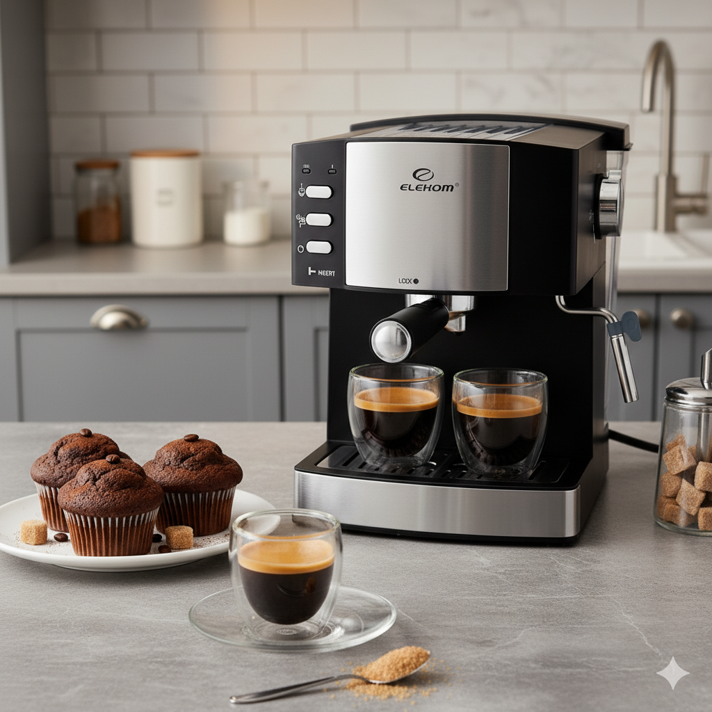 Ново поколение кафемашина ЕК - 6870 от електроуреди ЕЛЕКОМ. Стилен дизайн и функционалност. Създадена за ценителите на еспресо и капучино, както и на други кафе напитки. С нея можете да имате еспресото, което обичате, капучино, лате или макиато. Капацитетът и е до 2 чаши еспресо или една голяма чаша капучино/ макиато. С функция "пухкаво мляко" тя създава невероятното вкусно капучино за ценителите на напитката. Изключително лесна и удобна за употреба всеки ден. Висококачествена кафемашина с Италианска помпа ULKA 20 бар. извличаща ароматен вкус и примамлив каймак.
