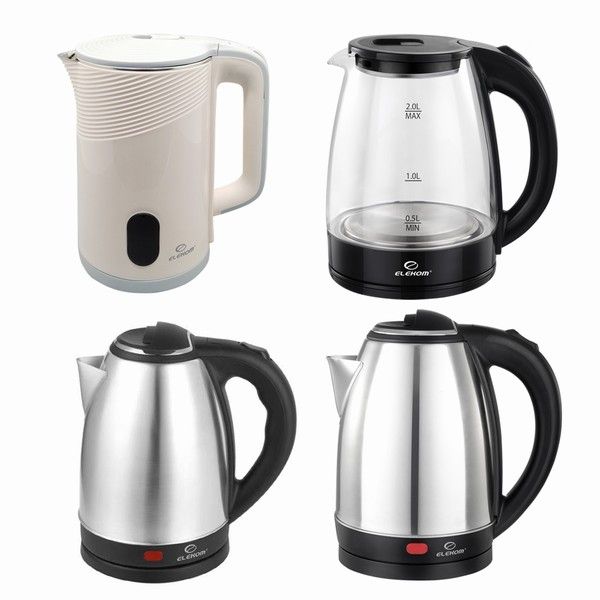 Този пакет съдържа 4 електрически кани Elekom – модели EK-5001, EK-8001, EK-1600 и EK-1800.