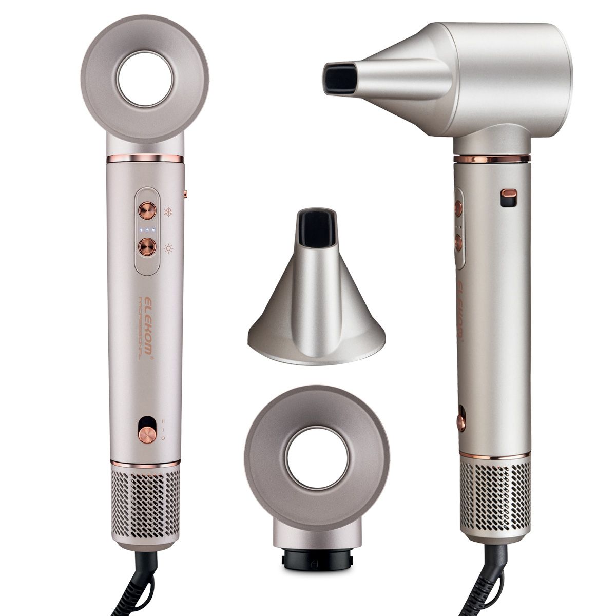 Високоскоростен сешоар с безчетков BLDC мотор от ново поколение, осигуряващ 110 000 об/мин и мощност 1400 W. Разполага с йонизация за защита и блясък на косата, 5 приставки (концентратор, кръгла четка 54 мм, накрайници за ляво и дясно навиване), 2 степени на работа, бутони за студен и горещ въздух и светлинни индикатори. Работи тихо, има 360° въртящ се кабел, работно напрежение 220–240 V, 50–60 Hz. Компактен и лек дизайн – удобен за професионална и домашна употреба.