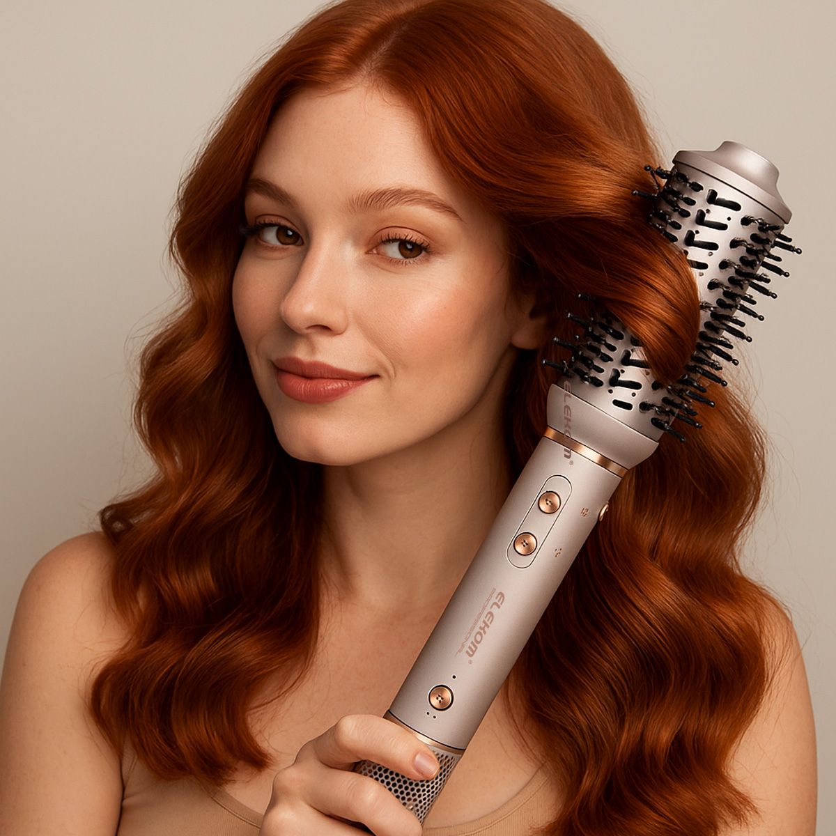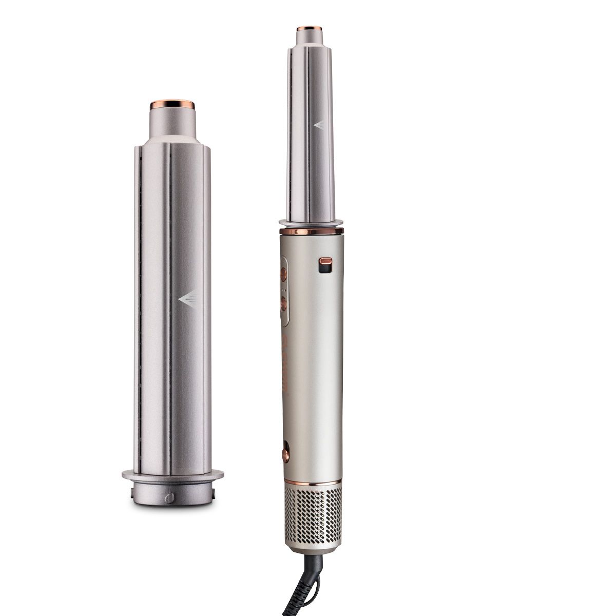 Комплектът включва пет практични приставки: сешоар, концентратор, кръгла четка 54 мм, маша за ляво и маша за дясно навиване. Така можете лесно да създавате различни прически – от перфектно изправена коса до елегантни къдрици и обемни форми.