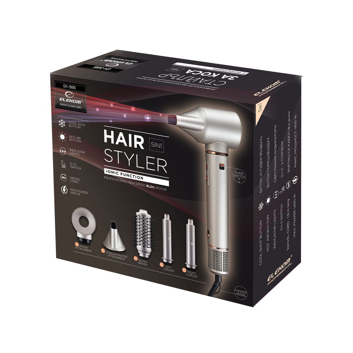 Високоскоростен Сешоар Стайлър ЕК-988 5 в 1, 1400W, Йонизация, BLDC мотор