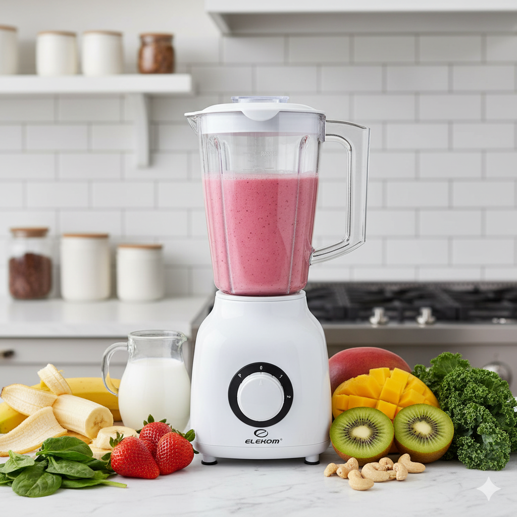 EK-6103 W • 1,5 Литра кана с разграфен литраж • 6 бр неръждаеми остриета • 2 Скорости + Пулс • Лесен за работа и почистване • Може да блендира домати за доматен сок и супа • Система за сигурно стартиране само при правилно сглобена кана • Отвор за добавяне на продукти на капака • Гумирани крачета против хлъзгане • Лесна за работа и чистене • Макс. Мощност: 600W • AC: 220-240V/ 50-60Hz