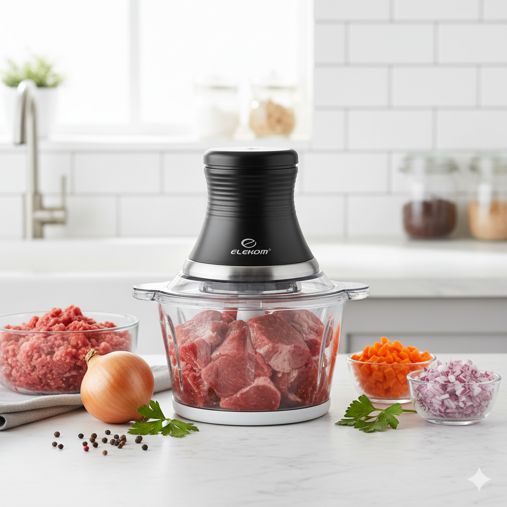 Надежден чопър с 1.8 литрова стъклена купа, идеален за всяка кухня. Оборудван с остриета от неръждаема стомана и две режещи остриета за бързо и ефективно кълцане. Лесен за употреба с push бутон и удобен за почистване. Мощност 400W.