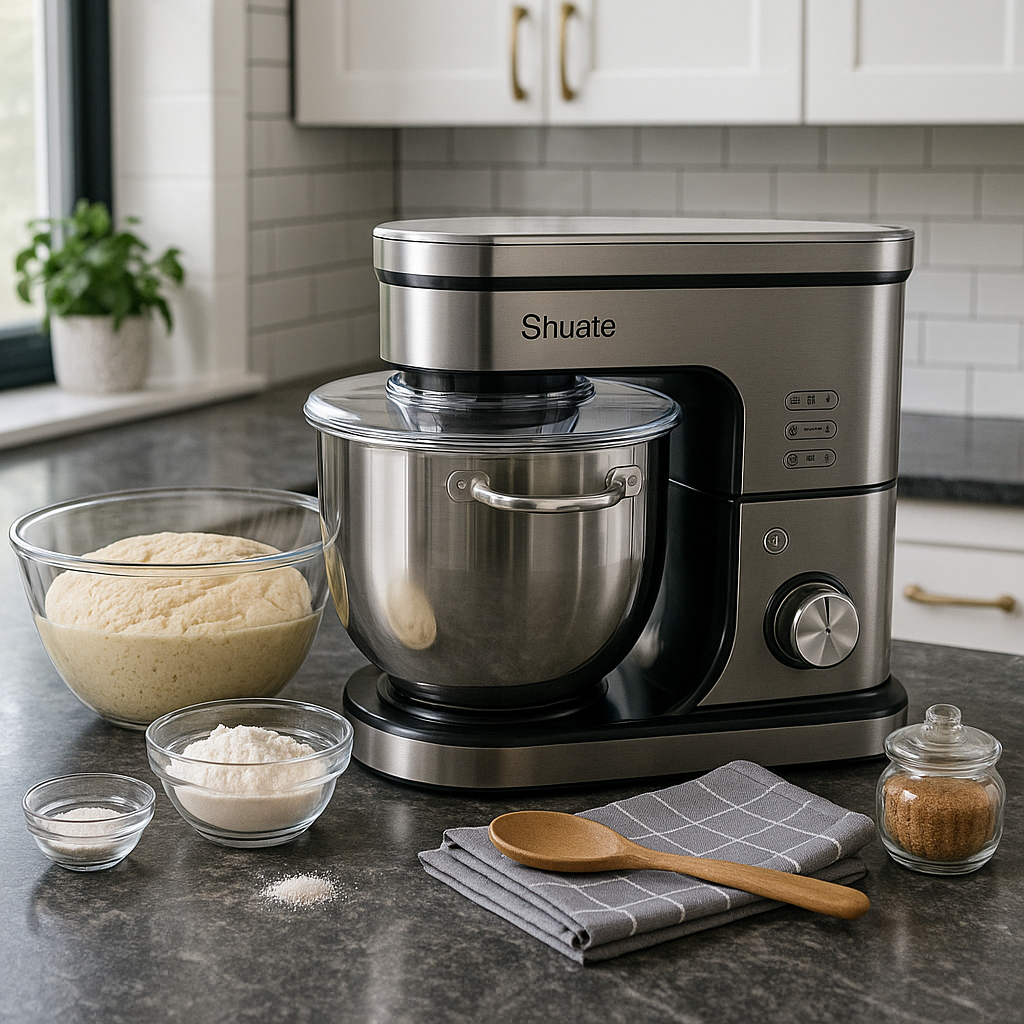 Планетарен миксер SU-212E помощник за всяка кухня! С купа от неръждаема стомана с капацитет 10 литра и защитен капак против пръскане, този миксер е перфектен за смесване, разбиване на яйца и месене на тесто. Снабден с бъркалки за различни нужди и кука за тесто, той предлага лесно почистване и стабилност благодарение на неплъзгащите се крачета. Разглобяемите части улесняват поддръжката, а 6-те режима на работа и функцията Турбо осигуряват максимална гъвкавост. С мощност от 2000 W, Планетарен миксер SU-212E е вашият надежден партньор в кухнята.