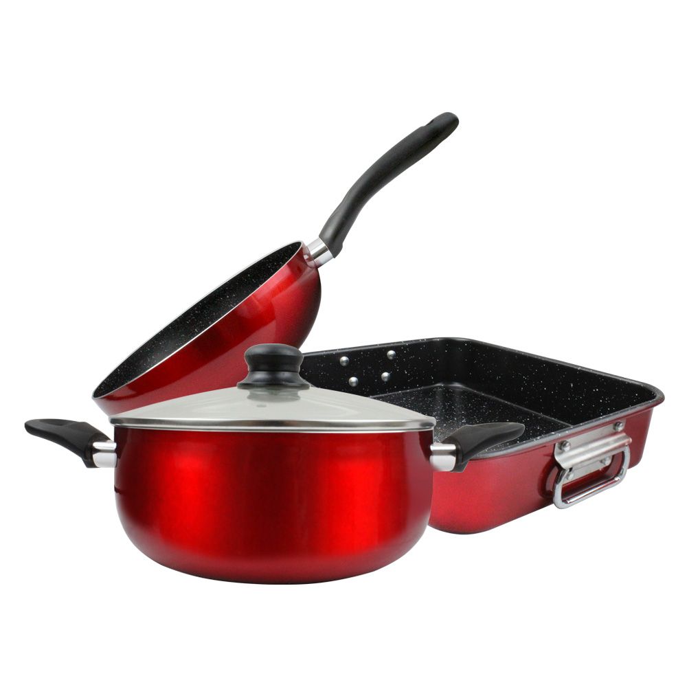 Лукс Комплект Съдове в червена гама - Тава с дръжки, Уок Тиган, Тенджера