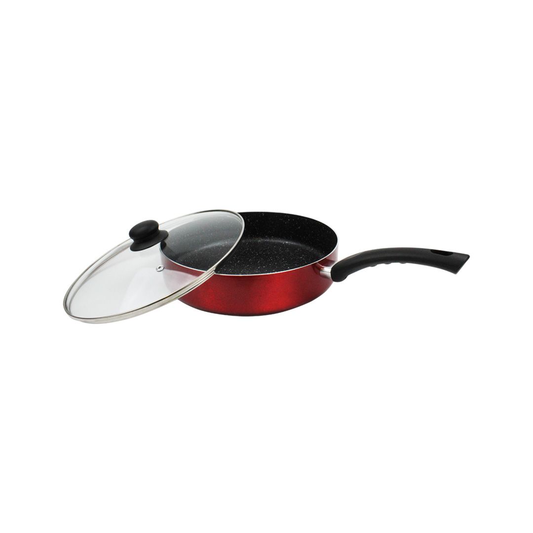 Дълбок тиган със стъклен капак ЕK-244 R, Мраморно незалепващо покритие, 24 см