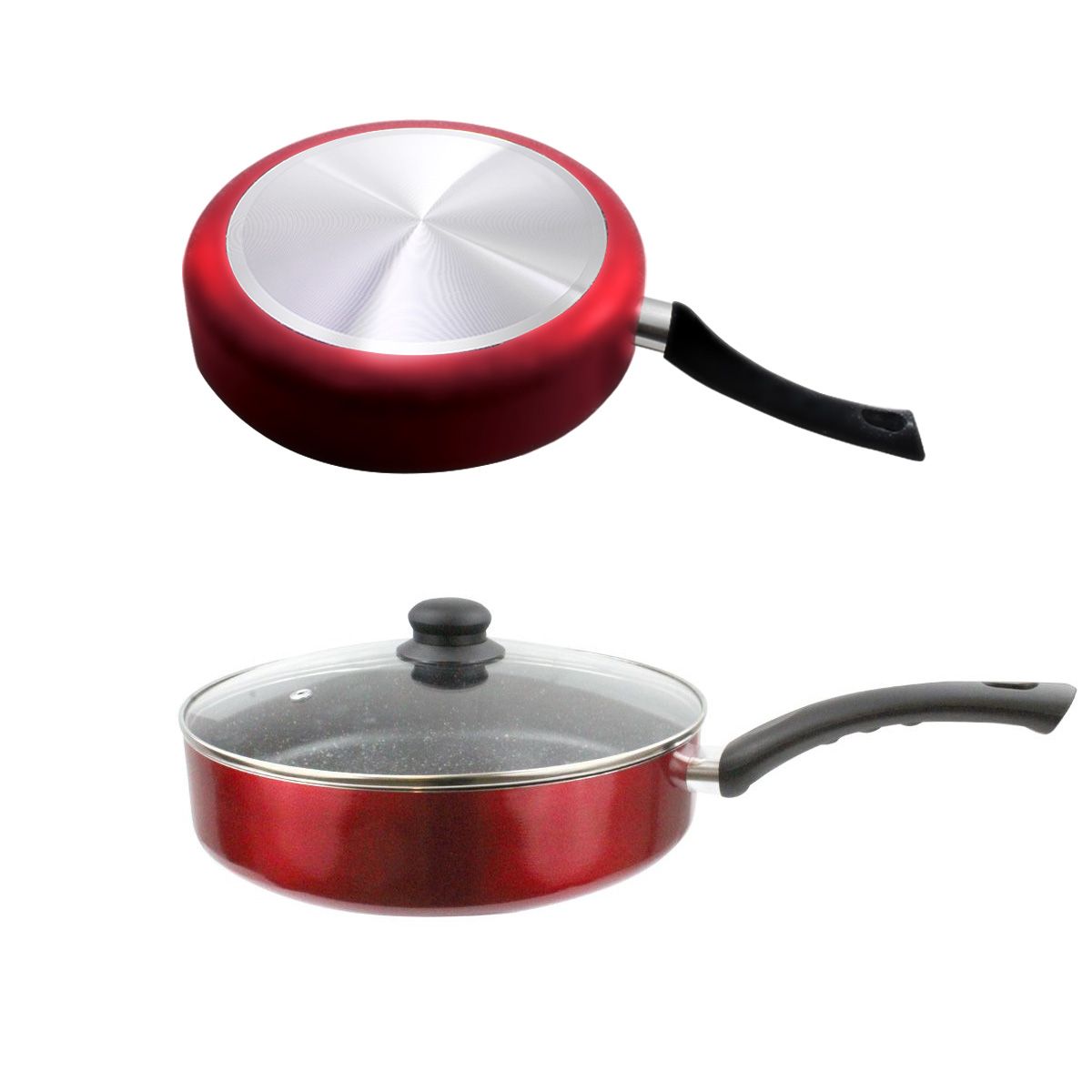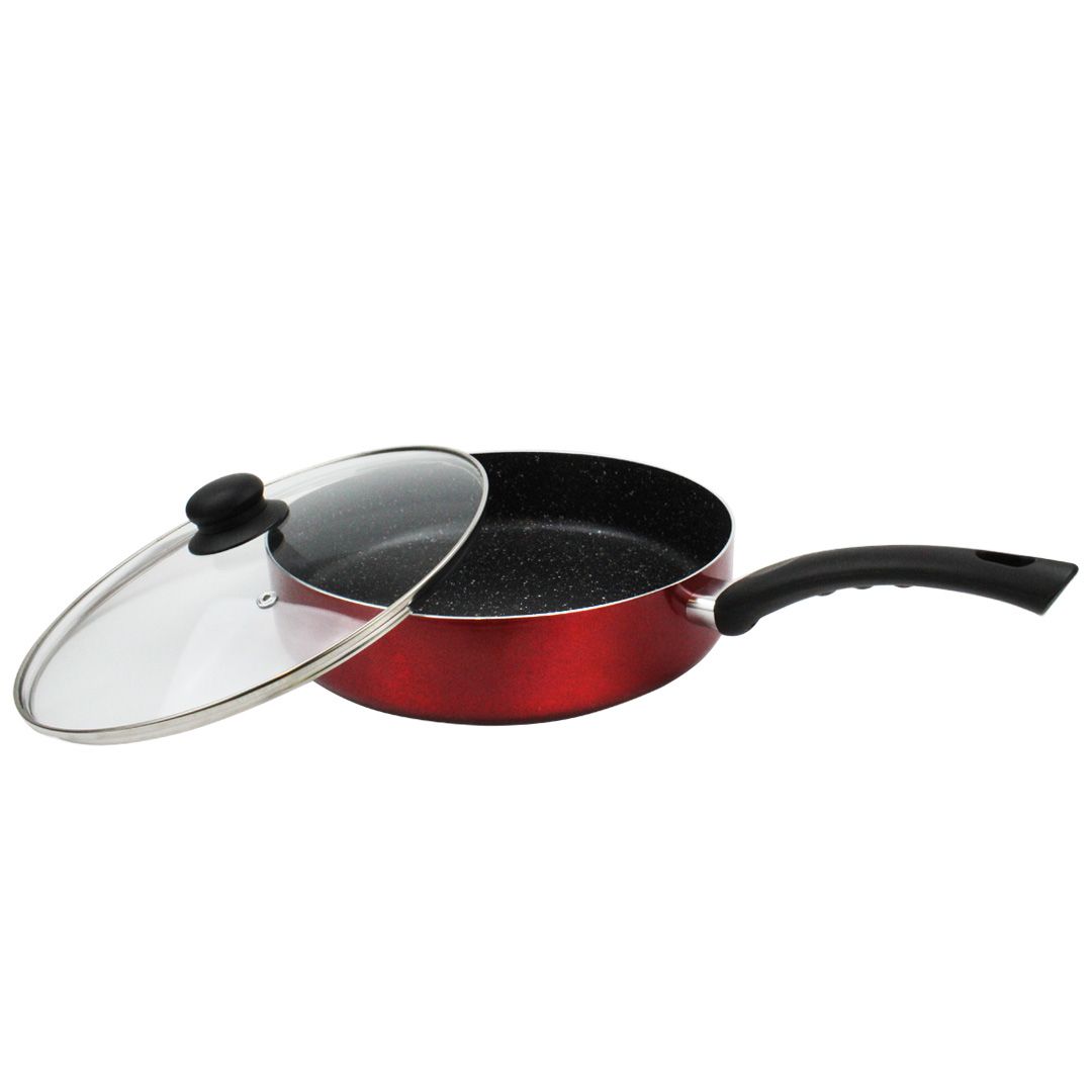 Дълбок тиган със стъклен капак ЕK-288R, Мраморно незалепващо покритие, 28 см